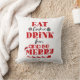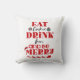 Funny Christmas Eat Cookies Drink Wine & Be Merry Cushion