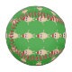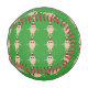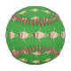 This awesome baseball features a funny cartoon of an egg with arms and legs. The egg has arms and legs and a small crack in its head exposing the white inside. It has blue eyes with a black pupil and a big smile where the yolk of the egg can be seen. The eggshell looks rough. This Christmas egg is wearing a santa hat ready to party this holiday season.