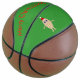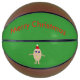 This awesome basketball features a funny cartoon of an egg with arms and legs. The egg has arms and legs and a small crack in its head exposing the white inside. It has blue eyes with a black pupil and a big smile where the yolk of the egg can be seen. The eggshell looks rough. This Christmas egg is wearing a santa hat ready to party this holiday season.