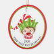 This funny holiday ornament features an elf in a face mask in a green and white frame on a red background with text "This Year Was Elfed Up 2020". Background colour and text can be changed by clicking "Personalise". A humourous keepsake to commemorate the year.