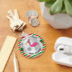 A funny Merry Christmas design featuring a hilarious Xmas flamingo and a traditional red and green striped frame.
