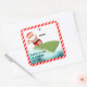 Surfing Christmas gift tag stickers, party favour labels or envelope seals featuring funny Santa surfer.