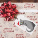 A grey cat wearing a red Santa hat. The grey cat is grumpy about Christmas