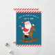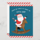 Creative equestrian Christmas holiday cards for friends and family featuring Santa riding a rocking horse.