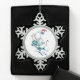 Only in the whimsical world would ever see an Alaska lemming snow machining for the Christmas holidays. Beautiful designed pewter snowflake Christmas tree ornament for all your needs, great gift item or completing your own collection of whimsical wildlife.