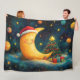 Funny Christmas Moon Galaxy Celebration Fleece Blanket