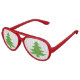 Funny Christmas party shades with xmas tree. Cute costume accessory for celebration at home or office. Fun prop for kids and adults.