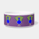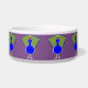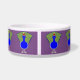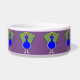 This awesome pet bowl features a bright and bold Christmas Peacock wearing a Santa hat. The bird has a bright blue belly with a beautiful collection of feathers held proudly behind. The eyespots are blue, brown and green. The Peacock has big black eyes and a cute little grey beak.