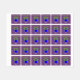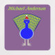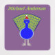 This awesome sheet of kids clothing labels features a bright and bold Christmas Peacock wearing a Santa hat. The bird has a bright blue belly with a beautiful collection of feathers held proudly behind. The eyespots are blue, brown and green. The Peacock has big black eyes and a cute little grey beak.
