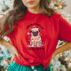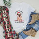 This funny Christmas pug t-shirt features a cute pug wrapped in Christmas lights and a Santa hat. Perfect for dog lovers who want to add some humour and holiday cheer to their wardrobe. Great as a festive gift!