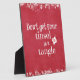 Don't get your tinsel in a tangle Christmas Quote gifts and decor. Fun Christmas decor canvases with funny and cute Christmas quote: Don't get your tinsel in a tangle with red background and bokeh sparkles light edges with Christmas ornament accent.
