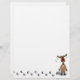 Funny and cute Christmas illustration featuring a reindeer with Christmas lights on his horns and reindeer footsteps.