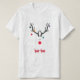 A funny and cute modern abstract image of a reindeer head with a red nose. With Christmas ornaments, baubles hanging from the antlers. White background,