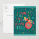 Funny Christmas Retro Woman on Festive Xmas Ball Holiday Postcard