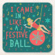 Funny Christmas Retro Woman on Festive Xmas Ball Square Paper Coaster