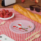 Funny Christmas Santa and Reindeer Cartoon Paper Plate