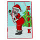 He's posing to show off his greatest... assets... in this cartoon picture, accentuating his lips and holding a sprig of mistletoe while he stares wide-eyed at the cell phone camera. The red text says, "ELFIE." This is a humourous, silly gift bag for the holiday season - and a bit of a parody.