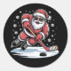 Funny Christmas Santa Playing Ice Hockey Xmas Classic Round Sticker