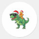 Funny Christmas T Rex Dinosaur Gingerbread Lights Classic Round Sticker