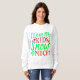 A cheerful sweatshirt features playful text that expresses love for children during the holiday season, adorned with festive colours and hearts, perfect for family gatherings and celebrations.