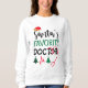 A cheerful sweatshirt design showcases the phrase Santa's Favourite Doctor, adorned with festive elements. Perfect for medical professionals celebrating the holiday season with humour and style.