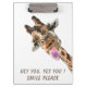 Funny Clipboards with Giraffe Tongue Out and Playful Wink - Smile Animal Cartoon Drawing - Choose / Add Your Unique Text / Font / Colour - Make Your Special Gift - Resize and move or remove and add elements / image with customisation tool ! - Drawing and Design by MIGNED. You can also transfer my designs to more than 1000 Zazzle products. Smile - Be Happy :)