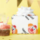 Funny clown face pattern custom Birthday Wrapping Paper. Personalise gift wrap rolls with name and cute mime with red hear.