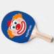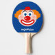 Funny clown face ping pong paddle for table tennis. Personalised ping pong paddle for table tennis. Sports game gift idea for kids. Custom background colour. Cute mime drawing with red hat and orange hair.