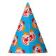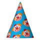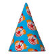 Funny clown kid's Birthday party paper cone hats. Cute pattern with mime face drawing. Blue or custom colour. Personalise with text optionally.