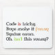 Dive into the sunny side of coding with our "Code is tricky, Bugs make it funny, Syntax errors, Oh, isn't this sunny?" shirt. It's not just a tee; it's a playful ode to the quirks of coding that brings a smile to every programmer's face. Crafted for comfort and style, this shirt is a cheerful addition to your coding adventures or a delightful gift for your favourite developer.