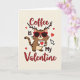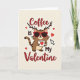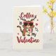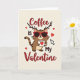This greeting card shows a stylized cat in cocoa and caramel brown with darker stripes, sitting back and holding a white mug with a red heart on the front. The cat wears red-framed sunglasses that cover its eyes, giving it a relaxed, cool look. On top of its head are small dark brown antlers, adding a funny little twist to the character. Around the cat, small red hearts are scattered across a creamy off-white background, keeping the mood sweet and romantic ❤️. The card text reads “Coffee is My Valentine,” with “Coffee” and “Valentine” in deep red script lettering, while “is” and “My” are in darker block-style letters. The words are arranged around the cat so they feel like part of the scene rather than an afterthought. A black computer mouse cursor points toward the cat, hinting that this is a digital illustration and adding a modern touch 💌🍫. Hope it helps you share a little extra affection and kindness this Valentine’s Day.