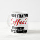 Cute coffee mug that says “How do I take my coffee Seriously Very seriously” in black and red text.