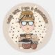 Funny coffee pot head classic round sticker