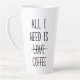 Start your day with a laugh! Our minimalist latte mug says it all: 'All I Need is Coffee'. Perfect for coffee lovers! #CoffeeHumor