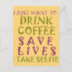 Introducing our playful “Funny Coffee Selfie Quote Design,” a vibrant and humourous piece that captures the essence of coffee lovers and selfie enthusiasts! Featuring the catchy phrase, “I just want to drink coffee, take selfies, and save lives,” this artwork is designed in bold red and lemon green typography against a sunny orange-yellow background, making it a perfect statement piece for any coffee lover.
