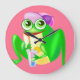 Funny Colck with Happy Party Frog - Your Colour Large Clock