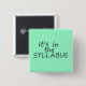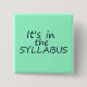 There is not a college instructor or teaching assistant in the country who hasn't repeated the phrase "It's in the syllabus" on a daily basis! To save time in class, this button will get the message across. Great gift for your favourite TA or university adjunct.