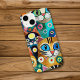This cute abstract phone case features a collage of funny cartoon cats with big eyes. The colourful image is in tones of blue, orange tan, green, red, pink, yellow and white. Colourful, and definitely eye catching!