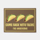 Funny Trendy Come Back With Tacos Doormat. Custom designed mat with the words "Come Back With Tacos" written in a cool typography font. This funny taco lover door mat will surely delight every guest who encounters it. Personalise this taco door mat with your family name.