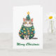 Funny Comic Whimsical Cat Merry Christmas Tree Card