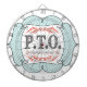 Our "PTO" dartboard, features a retro design that boldly showcases the acronym "PTO" along with the playful phrase "Pretend Time Off." The combination of these words instantly brings a smile to your face, offering a lighthearted reminder to take a break and indulge in some well-deserved fun.