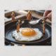 Tiny construction workers fix an egg in a frying pan funny surreal AI generated art