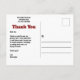 This cute, funny, whimsical design features a cool orange tabby cat on the front wearing a graduation cap and deep red sunglasses. Above the cat are the words, "Thank You" in deep red in popular typography. On the back is a customisable return address, the words, "Thank You" in deep red, and an optional customisable message. Simply erase the text in the "Message" field for a blank postcard.