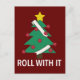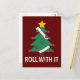 Funny Covid Christmas postcard that reads Roll with It. This toilet paper coronavirus humour card features a Christmas tree decorated with Covid19 ornaments and unrolled toilet paper for a garland decoration this pandemic holiday season.
