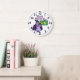 This custom wall clock has a funny purple cartoon gorilla trying to figure out a math problem about bananas. It's counting on its fingers and looking rather confused.