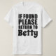 This design is meant to be personalised with the name of your BFF, buddy, spouse, or partner. It pairs perfectly with our 'I Am Betty' shirt. Don't get lost when you're on the road. This humourous design is perfect for a wedding gag gift, pairs costume, or bon voyage gift. It's suitable for white and light-coloured backgrounds. Easily customised by changing "Betty" to any other name. Design tip: size personalised text to slightly wider than "RETURN TO."