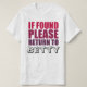 This design is meant to be personalised with the name of your BFF, buddy, spouse, or partner. It pairs perfectly with our 'I Am Betty' shirt. Don't get lost when you're on the road. This humourous design also works as a pairs costume or wedding gift and is suitable for white and light-coloured backgrounds. Easily customised by changing "Betty" to any other name and colour.