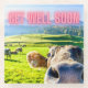 Fun coaster design that's sure to make someone under the weather put a smile on their face when they see this cow's closeup! Cows in pasture photo with neon pink / red Get Well Soon text overlay