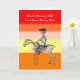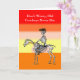 Humourous Cowboy birthday greeting card, with a skeleton cowboy riding a skeleton horse, into the sunset. Text inside and outside is fully customisable to read anything you want. Great birthday card for any cowboy.