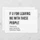 This Card features a Funny quotes. Click on the Personalise Button to Add Your Name, Text or Message on front and back. Best Funny Coworker Office Leaving gift.